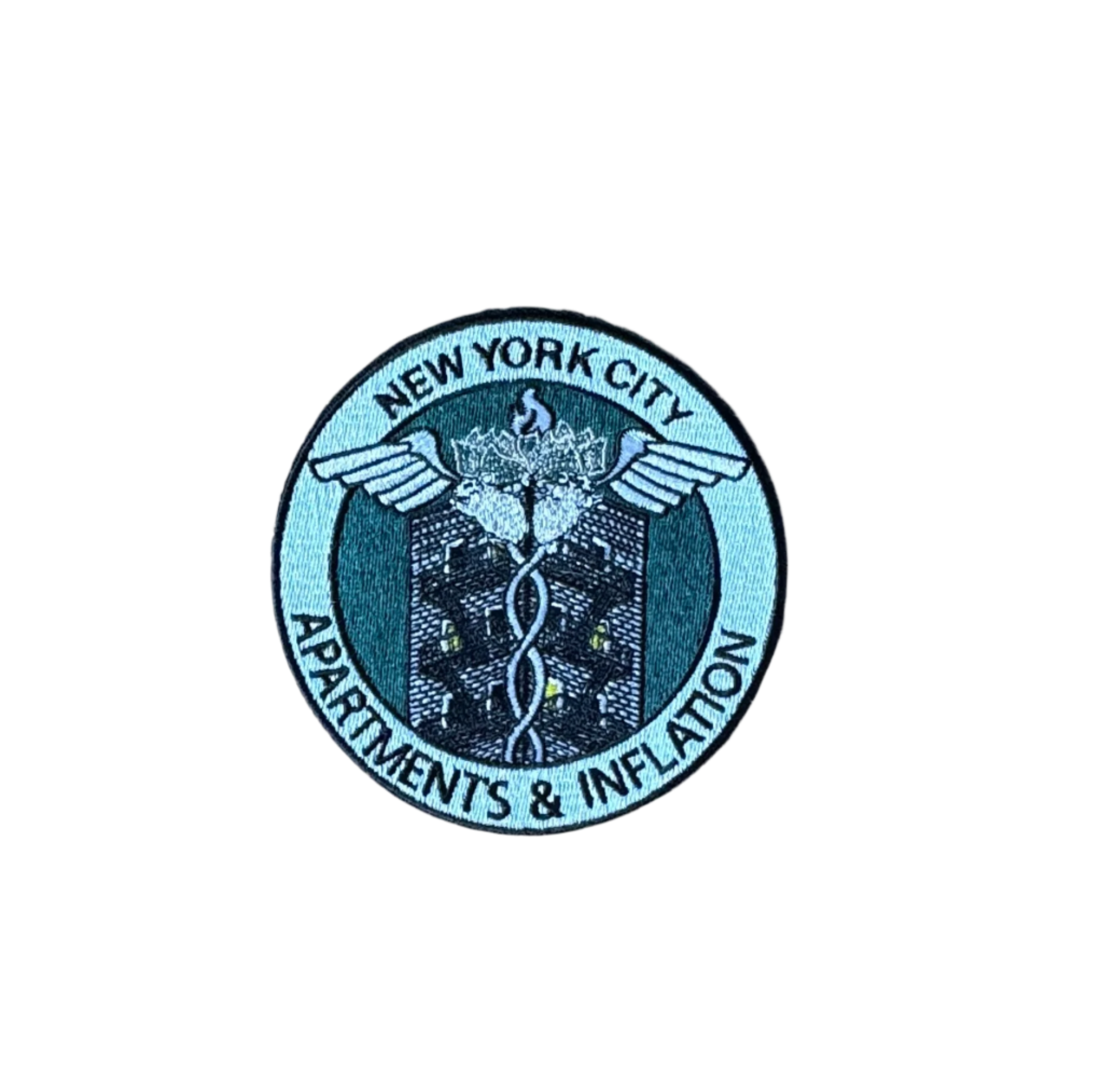 Apartments & inflation are pressing issues today. People are increasingly squeezed by high rents and devalued dollars. The caduceus staff, an ancient symbol of commerce traditionally carried by Hermes in Greek and Egyptian mythology, is reimagined here. Instead of serpents, the staff is entwined with rats, a nod to New York City’s notorious residents. The wings, which enabled Hermes to traverse between the heavens and earth, are humorously likened to ‘rats with wings’—a New Yorker’s term for pigeons—highlighting the rats’ ability to fly between trash cans.