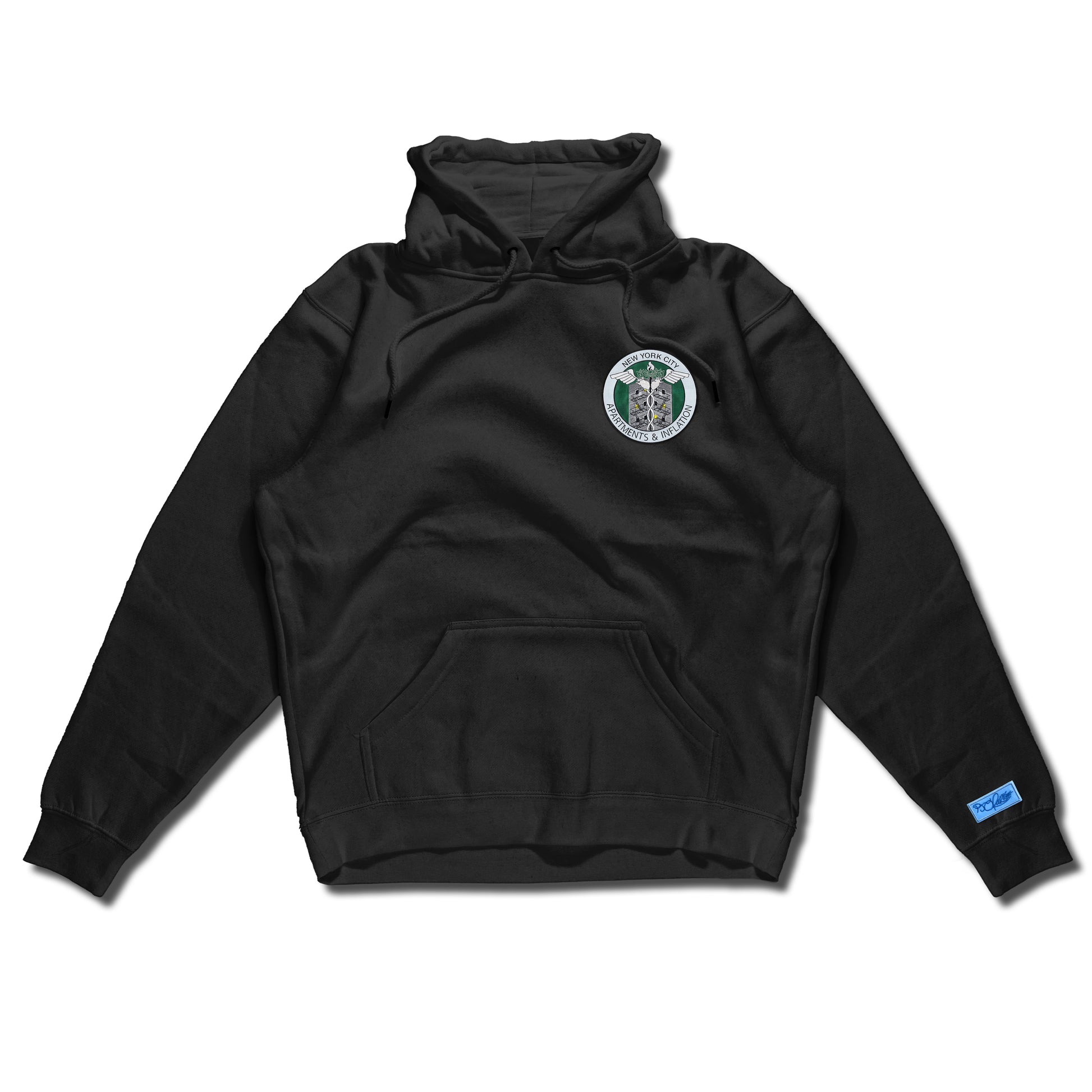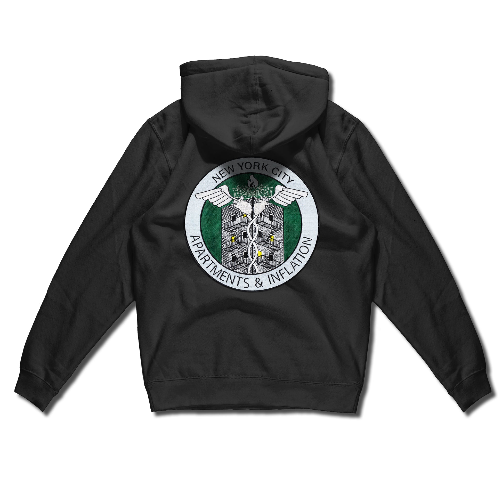 New York City Apartments & Inflation hand sewn embroidery on 10 oz. pullover hoody