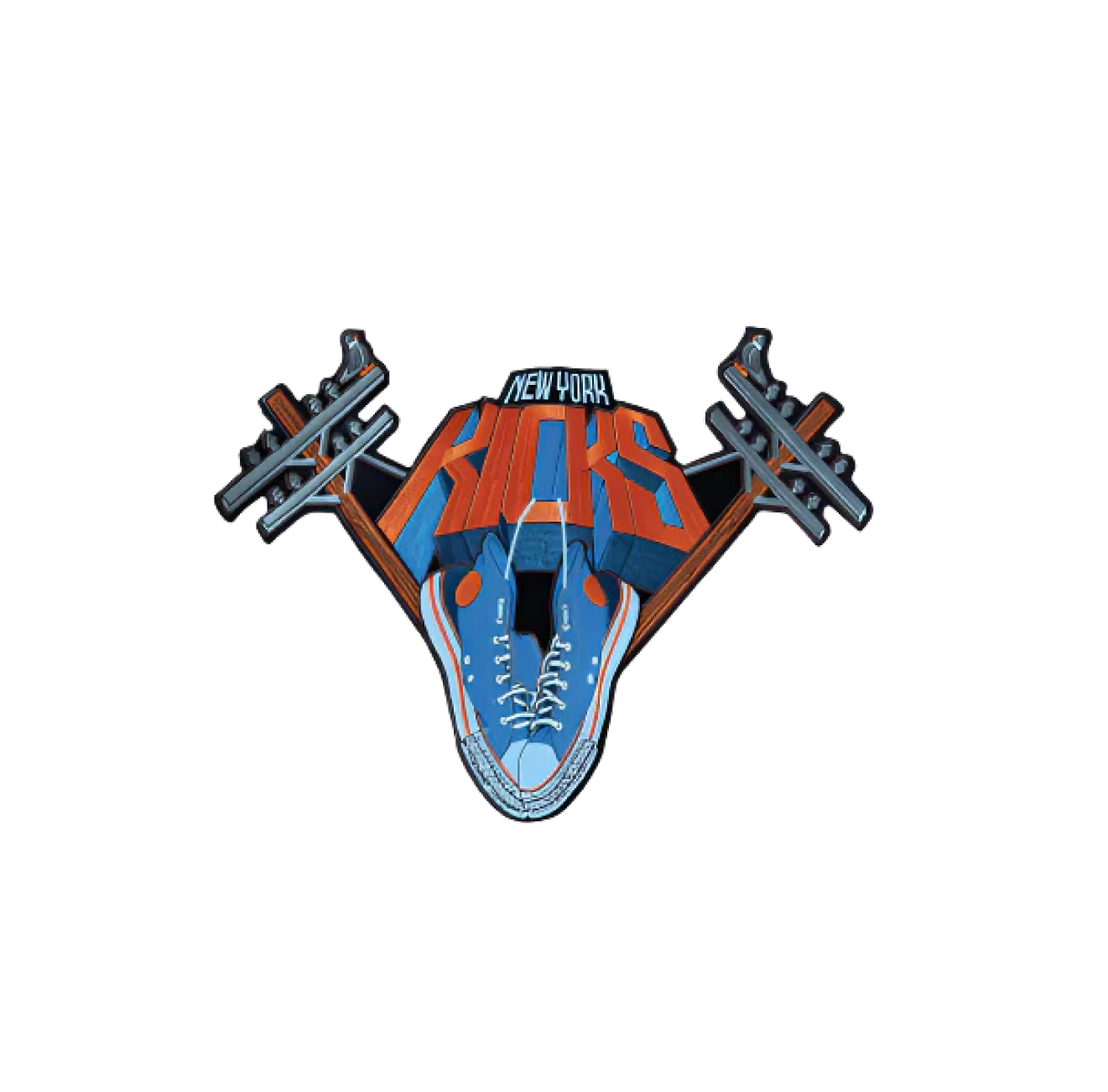 The pigeons represent the city’s most resilient residents—ever-present, unbothered, and woven into the daily rhythm of New York. The hanging shoes nod to 1970s street folklore, when wires told stories about neighborhoods, eras, and unwritten rules. And “kicks” speaks to sneaker culture—where footwear is identity, status, and self-expression, born on these streets and exported worldwide.