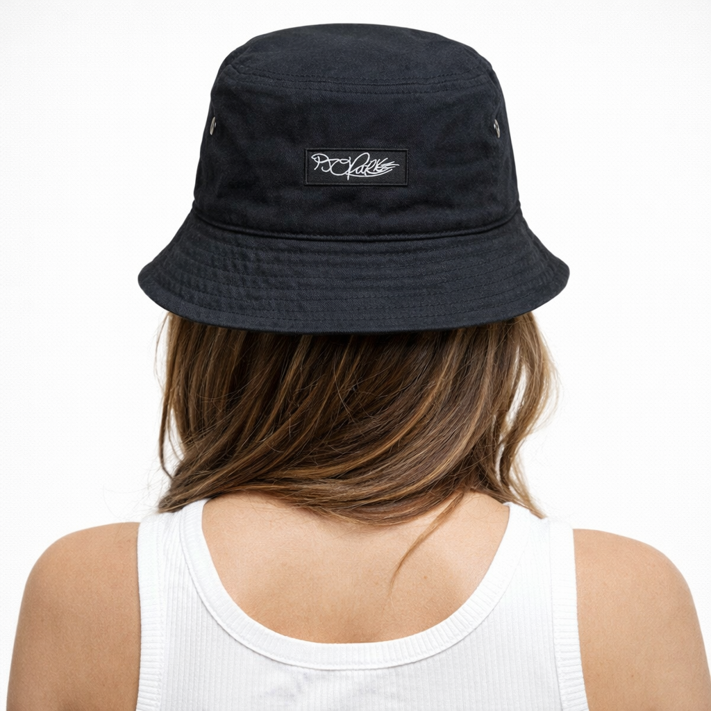 Designed for elegance that endures, the Selfies at Tiffany’s bucket hat is crafted from durable cotton twill canvas; a fabric known for its strength, breathability, & soft, broken-in feel over time. The matte black finish gives it a grounded, utilitarian edge, while the embroidered Midtown muse adds a quiet note of sophistication & irony.
