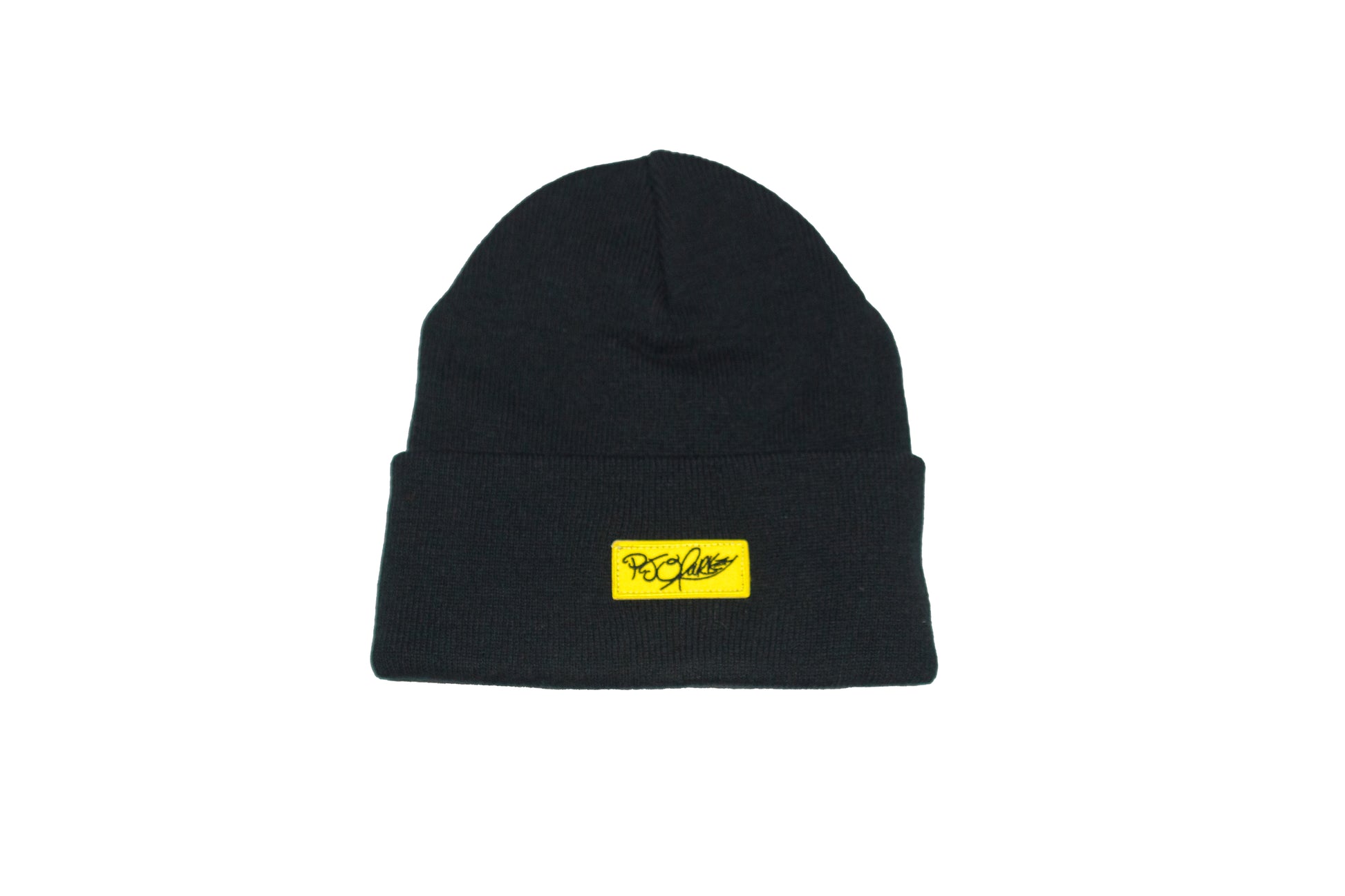 The patch is centered on the front of the beanie. A branded PJ O'Rourke patch is placed centered on the backside of the beanie.